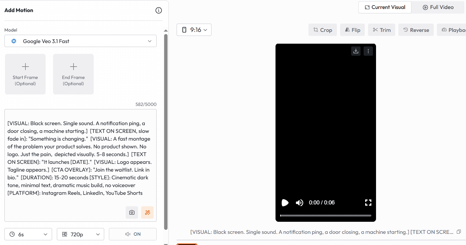 [VISUAL: Black screen. Single sound. A notification ping, a door closing, a machine starting.] [TEXT ON SCREEN, slow fade in]: "Something is changing." [VISUAL: A fast montage of the problem your product solves. No product shown. No logo. Just the pain, depicted visually. 5-8 seconds.] [TEXT ON SCREEN]: "It launches [DATE]." [VISUAL: Logo appears. Tagline appears.] [CTA OVERLAY]: "Join the waitlist. Link in bio." [DURATION]: 15-20 seconds [STYLE]: Cinematic dark tone, minimal text, dramatic music build, no voiceover [PLATFORM]: Instagram Reels, LinkedIn, YouTube Shorts