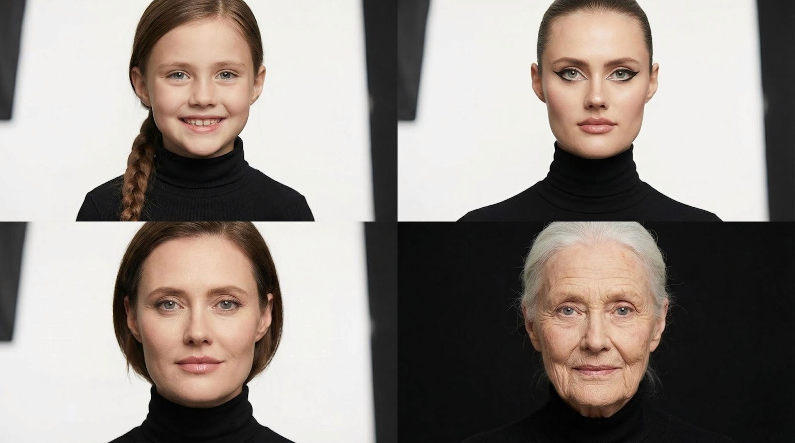 Show a character's journey from childhood to old age with perfect facial consistency.