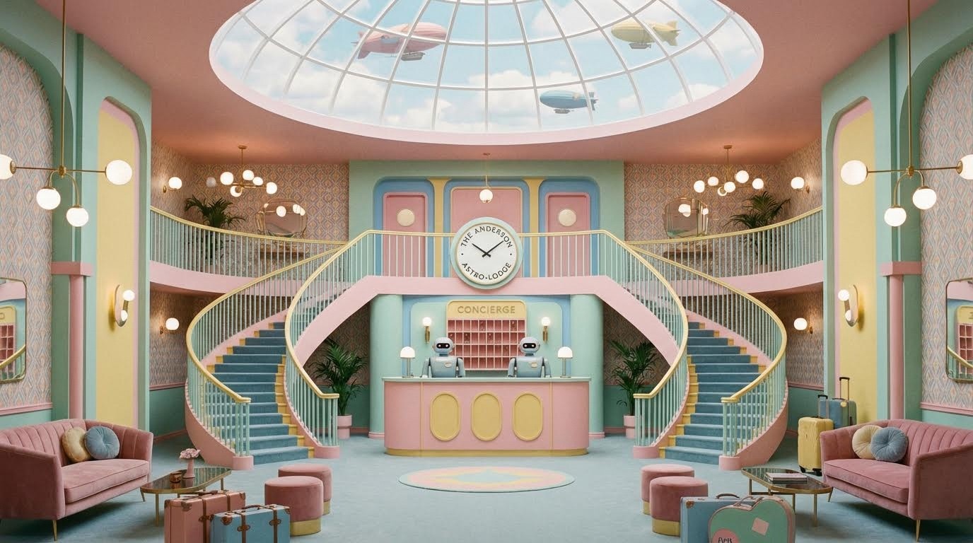 Examples: Grand Budapest Hotel, Kubrick films, luxury hotel lobbies