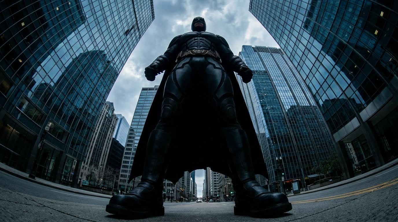 Chiaroscuro lighting combined with low angle perspective and complementary colors creates maximum drama. Think film noir meets superhero cinematography.