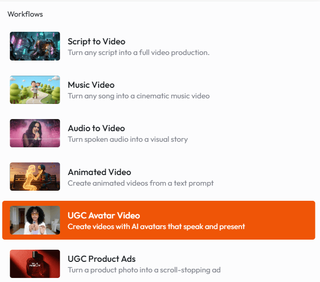 Atlabs is not a generic video generator. It is built around specific production use cases: Avatar Videos, Product Ads, Short Films, Animation, Music Videos, Educational Content, and Storyboarding. Each one has its own workflow logic, not just a blank canvas.