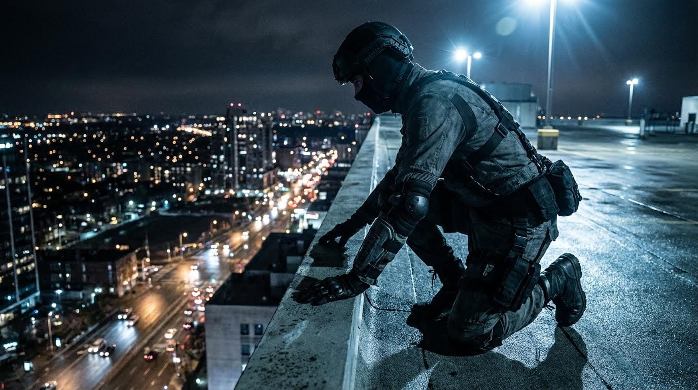 A low, handheld tracking shot makes the viewer feel like they are in the scene, crawling through the danger with the protagonist.