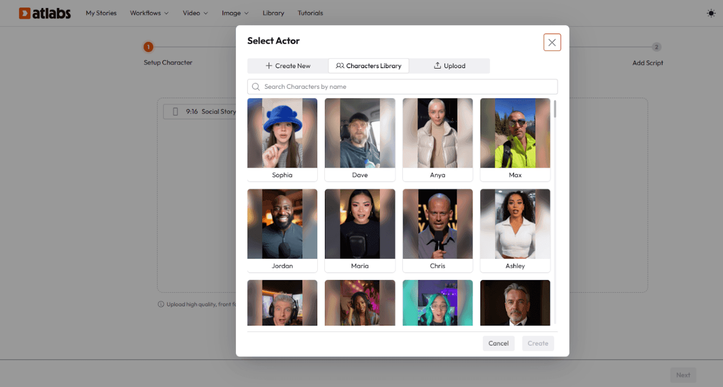One of the biggest unsolved problems in AI UGC is actor consistency. If you use a stock avatar from a library, there is no guarantee the same face and voice will be available, or will look the same, six months from now when you launch the next campaign. Atlabs solves this with a character casting system. Define your actor once, save them to your account, and they appear identically in every video you produce in the future. Same face, same voice, same energy. Your AI influencer is yours.