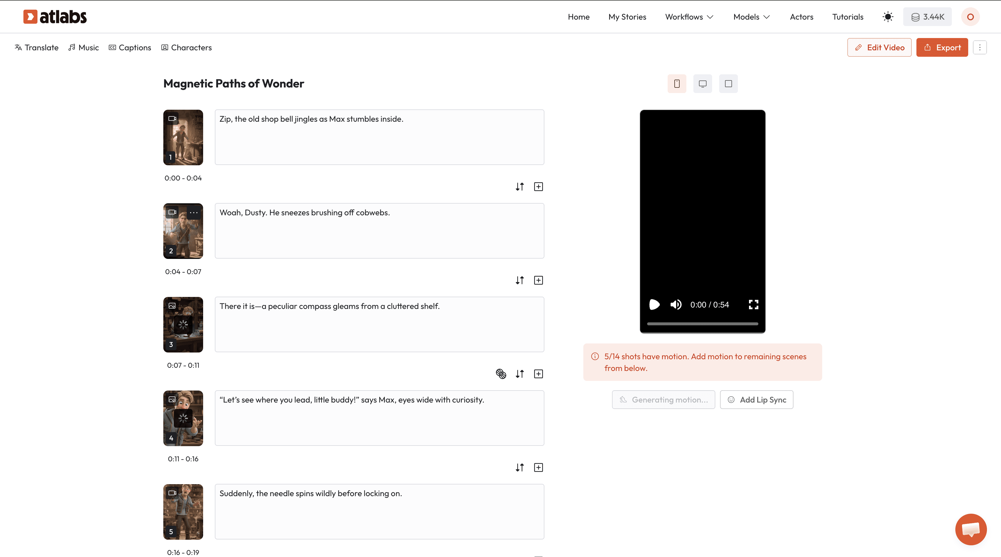 Atlabs is a filmmaker-first AI video generation platform. Atlabs focuses on consistency, allowing users to generate storyboards, maintain character consistency, apply lip-syncing, and export editable files for software like Adobe Premiere Pro.