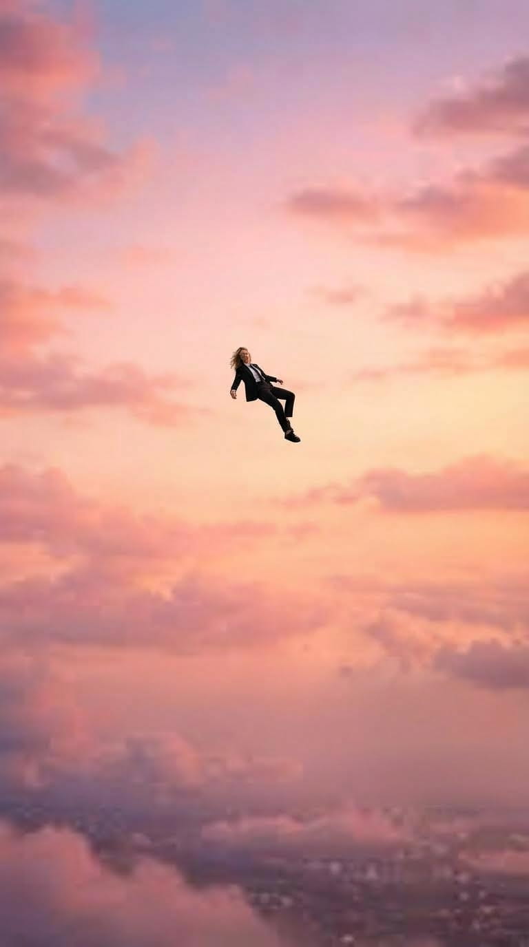 This is your hero image, you falling through clouds with emotional expression.