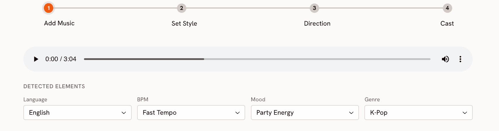 BPM: For a high-energy K-Pop comeback track, this will likely land on Fast Tempo or Very Fast Tempo. For a ballad, Mid Tempo or Slow Tempo. Adjust if the auto-detection is off.