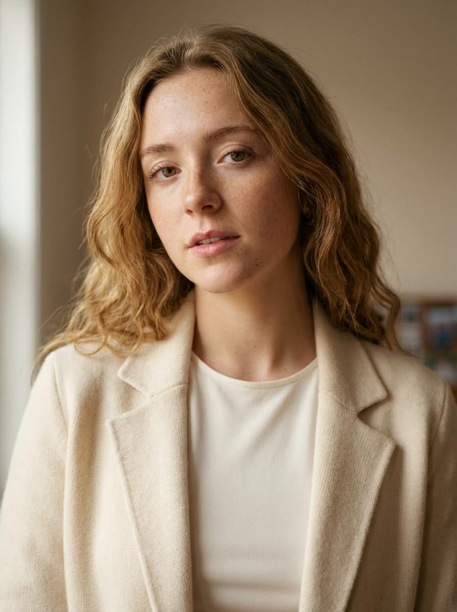 Using uploaded reference image as primary identity guide, preserve exact facial proportions, eye shape, nose, lips, jawline. Transform into GQ magazine front-cover portrait with French fashion house editorial mood and soft romantic luxury aesthetic. Refined young adult with calm introspective presence, slightly parted lips, contemplative expression, relaxed eyes, gentle confidence, emotionally expressive yet composed. Wardrobe: French luxury menswear, soft tailoring, premium knitwear, cashmere or fine wool, minimal structure, understated elegance. Color palette: cream, ivory, warm beige, soft taupe, muted pastels, light charcoal. Effortless Parisian styling. Grooming: skin healthy and natural with visible texture, subtle editorial retouching. Hair styled softly with natural flow and light volume, intentionally imperfect yet refined.Pose: chest-up or mid-torso, relaxed shoulders, gentle angle toward camera, intimate editorial posture. Natural window-light feel, soft diffused daylight, gentle highlights, smooth shadow transitions, subtle jawline definition, romantic tonal depth. 50–85mm lens look, shallow depth of field, ultra-realistic, natural perspective. Soft neutral studio or elegant Parisian interior, minimal, warm daylight ambiance. Style: GQ editorial, French luxury fashion house campaign, cinematic realism, warm filmic color grading, ultra-high resolution.