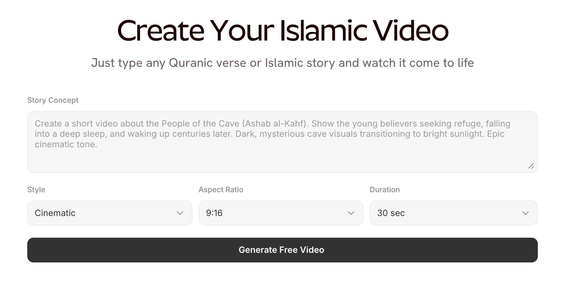 Creating a professional Islamic video takes less than five minutes. Here is exactly how it works: