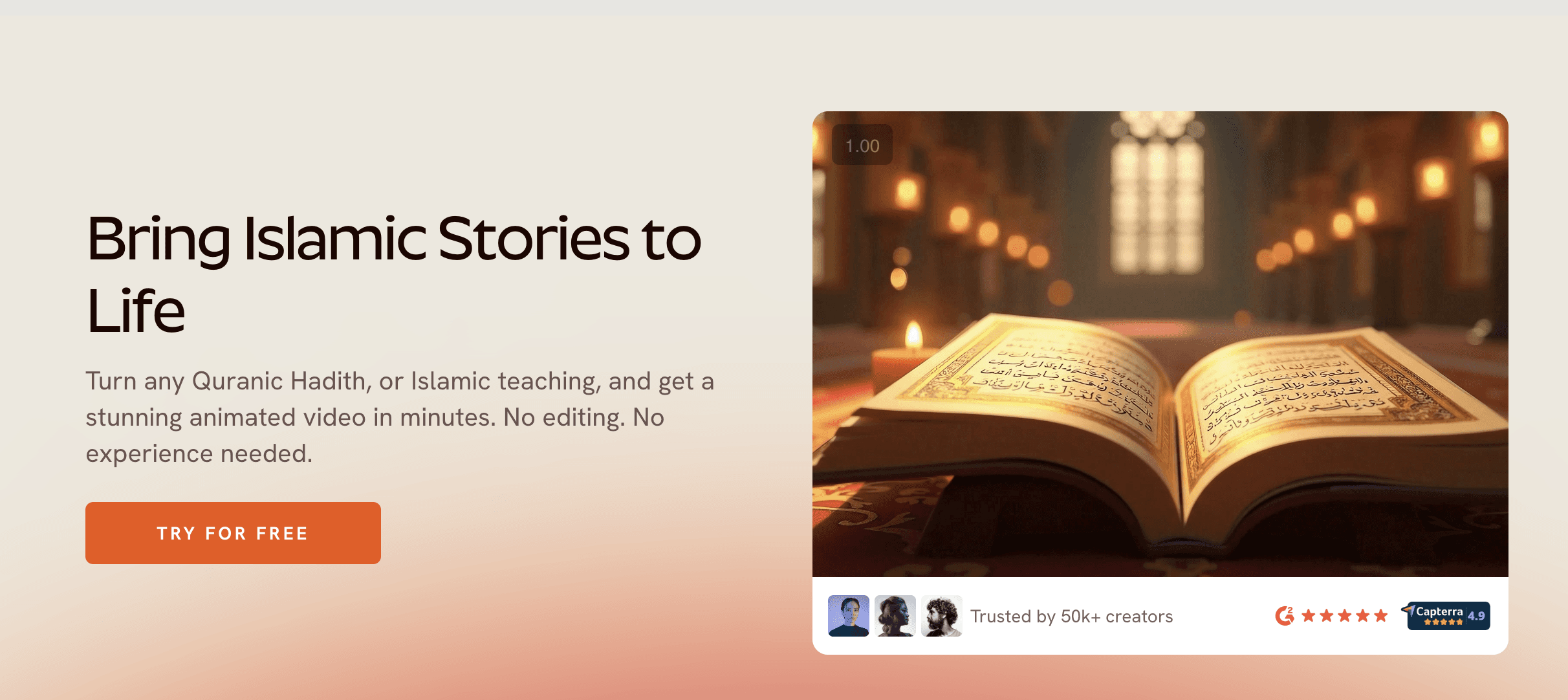 Every Ramadan, millions of Muslim creators, mosque admins, and Islamic educators face the same challenge: they want to produce beautiful, meaningful video content for their community - but they don't have the budget for a videographer, the time to learn editing software, or the tools built for Islamic content.