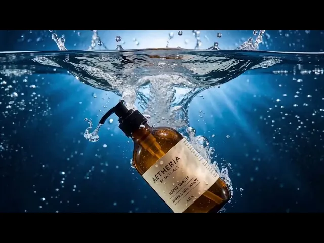 Change the category: The cinematic product ad structure works across categories. A water immersion sequence built for hand wash works equally well for a serum, a gin bottle, or a supplement.