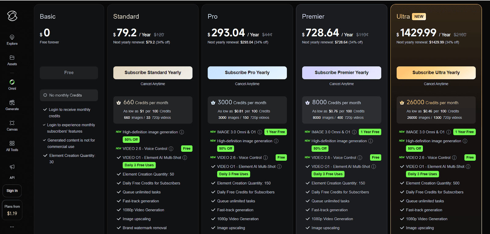 Kling 3.0 has a lower entry subscription at around $6.99 per month. For creators who generate content at high frequency and mostly use short-form 1080p clips, Kling offers better cost per generation.