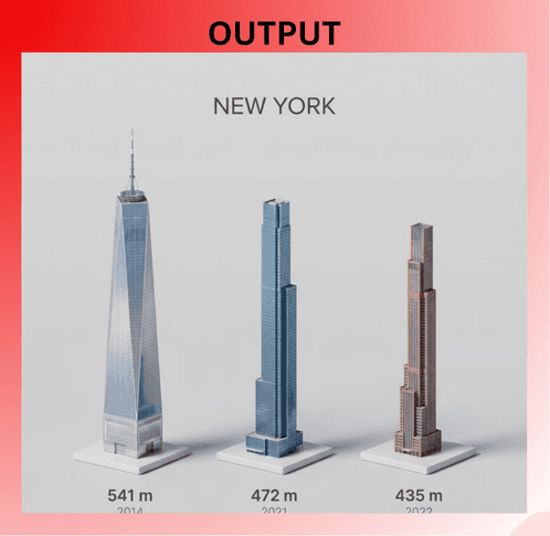 Present a clear, side miniature 3D cartoon view of [YOUR CITY] tallest buildings. Use minimal textures with realistic materials and soft, lifelike lighting and shadows. Use a clean, minimalistic composition showing exactly the three tallest buildings in Sopot, arranged from LEFT to RIGHT in STRICT descending height order. The tallest must appear visibly tallest, the second must be clearly shorter than the first, and the third must be clearly shorter than the second. All buildings must follow accurate relative proportions: if a building is taller in real life, it MUST be taller in the image by the same approximate ratio. No building may be visually stretched or compressed. Each building should stand separately on a thin, simple ceramic base. Below each base, centered text should display: Height in meters — semibold sans-serif, medium size Year built — lighter-weight sans-serif, smaller size, directly beneath the height text Provide consistent padding, spacing, leading, and kerning. Write "YOUR CITY NAME" centered above the buildings, using a medium-sized sans-serif font. No building top should overlap or touch the text above.Use accurate architectural proportions based on real-world references.Maintain consistent camera angle and identical scale for each building model. No forced perspective. Use straight-on orthographic-style rendering. Do not exaggerate or stylize size differences beyond proportional accuracy. Use a square 1080×1080 composition.Use a clean, neutral background. Ensure no extra objects are present