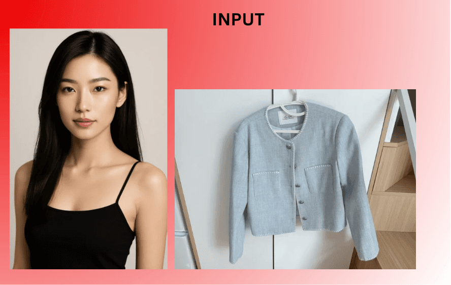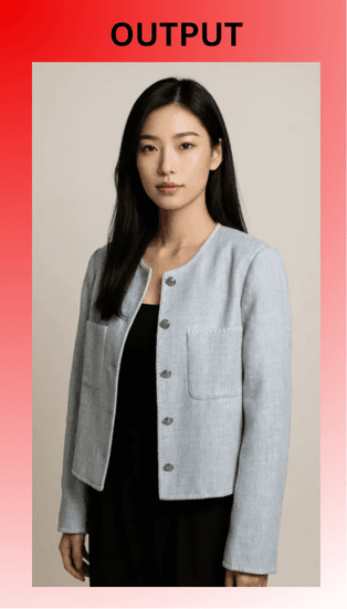 Using Image 1 (the garment) and Image 2 (the model), create a hyper-realistic full-body fashion photo where the model is wearing the garment. Crucial Fit Details : The [T-shirt/Jacket] must drape naturally on the model's body, conforming to their posture and creating realistic folds and wrinkles . High-Fidelity Preservation : Preserve the original fabric texture, color, and any logos from Image 1 with extreme accuracy. Seamless Integration : Blend the garment into Image 2 by perfectly matching the ambient lighting, color temperature, and shadow direction . Photography Style : Clean e-commerce lookbook, shot on a Canon EOS R5 with a 50mm f/1.8 lens for a natural, professional look.