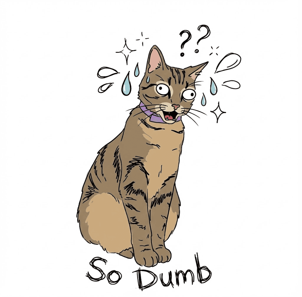 Turn this photo of my [cat/dog] into a funny hand-drawn WeChat sticker . Style : Minimalist ugly-cute line drawing (doodle style). White background. Expression : Exaggerate the animal's expression to look extremely shocked/judgemental/lazy (based on photo). Accessories : Add cute little doodles like sweat drops, question marks, or sparkles around the head. Text : Add handwritten text at the bottom: 'So Dumb'. Ensure the text style is messy and funny.