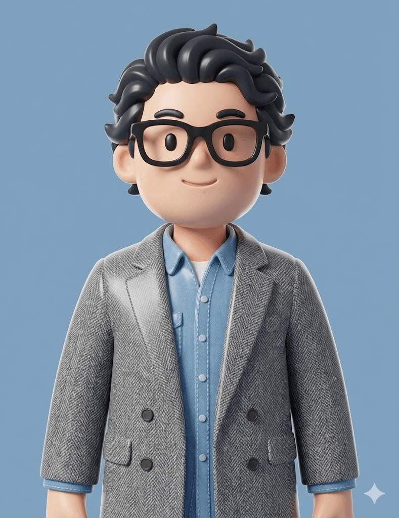 Transform the person in the uploaded photo into a cute 3D Pop Mart style blind box character . Likeness : Keep key features recognizable: [hair color, glasses, hairstyle]. Style : C4D rendering, occlusion render, cute Q-version , soft studio lighting, pastel colors. Background : A simple, solid matte color background (e.g., soft blue). Detail : The character should have a smooth, plastic toy texture with a slight glossy finish. Facing forward, friendly expression