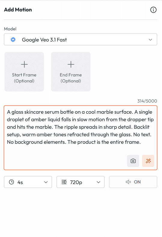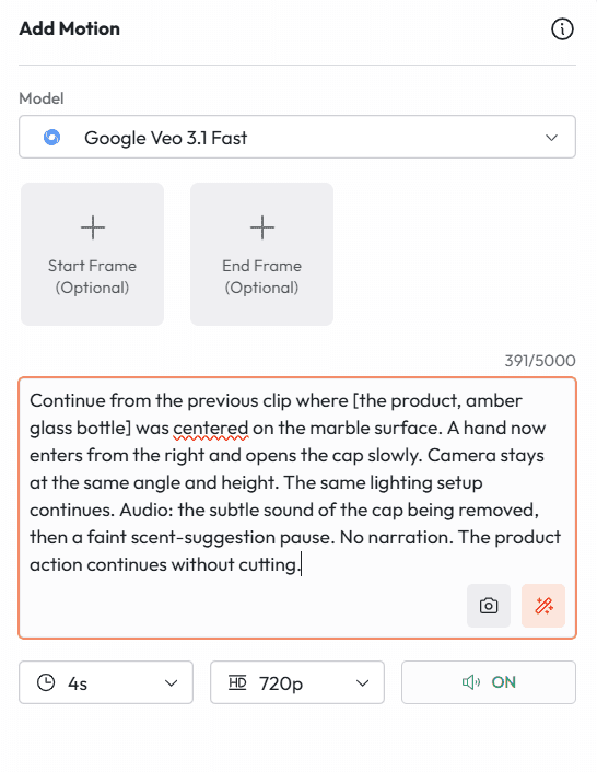 Prompt 5 Best for: Product ad from existing photography, ecommerce video, social creative
