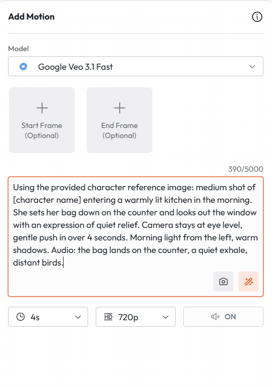 The most common mistake with text to video is under-describing. Veo 3.1 fills in every gap you leave with its own interpretation. That is sometimes great. More often, it means you lose specific control over the things that matter most: camera position, character appearance, lighting mood.